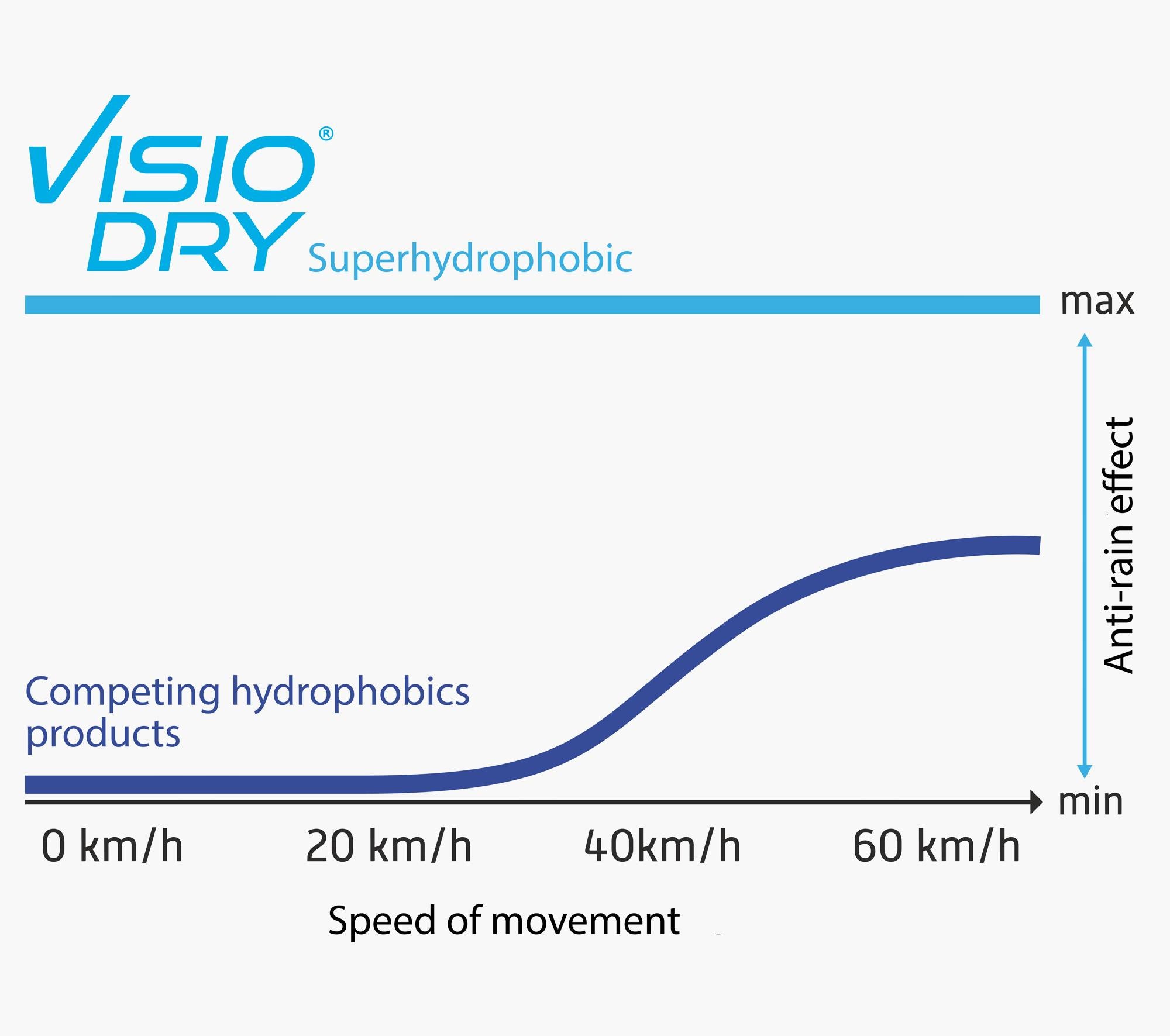 Dank des VISIODRY-Sprays superhydrophob (und nicht nur hydrophob):
